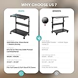 Fit for All PC Case: The PC stand for floor features 6-gear manual height adjustment ranges from 23 1/4'' to 33 1/4'' (2 inches per gear). Allow you to flexibly store the tower under your desk or next to your table. The pc cart supports most computer cases on the market including full-size ATX cases. Customize height of the pc case stand to increase the distance between the computer tower and the top shelf to speed up heat dissipation Multifunctional Design: The computer tower cart features an efficient 2-tier design, wider and more stable. The bottom shelf stores the PC tower while the top shelf holds printers, plants, documents, and magazines. The Pegboard on the back organizes office supplies such as power strips, etc. The mousepad is included, this pc tower stand can be used for mouse operation & comfortable arm rest. The computer cart can also be used as a mobile laptop stand or a rolling computer desk that allows you to settle into any place for work, like a bed or sofa, ready to set up Mobility and Stability: The computer stand has four 360-degree rotating mute wheels enable smooth movement on the carpet. Mobile design of computer tower stand allows for easier use in home and office even when fully loaded, reducing carpet prints and indentations, and easy to clean the floor. Dual casters with brakes hold the pc holder firmly in place for stable performance. Sturdy Structure: EPA TSCA Title VI & CARB Phase Ⅱ Certified desktop panel with premium anti-scratch finish. Thickened steel frame with powder-coated finish resists corrosion to ensure stability and durability, is not easy to scratch or deform, no wobbling. The bottom shelf max weight is up to 100 LBS, the top shelf is 80 LBS. NOTE: When moving, the cpu stand can only support up to 80 LBS. Excellent service: Please communicate with our 24-hour US-based customer service with any questions. | Easy installation--friendly to novices