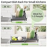 TOOLF Small Dish Drying Rack, Mini Expandable Compact Dish Rack, Slim Extendable Stainless Steel Dish Drainer for Kitchen Plate Storage, Space Saving Dish Strainer in Sink or on Home Countertop, Gray