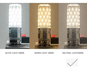- Lxcom Lighting 16W E26 Standard Base LED Corn Light Bulbs Specification: CRI: ≥80 Watts: 16W Base Type: E26 Dimmable: No Lumen: 1200lm Equivalent: 150 Watt Shell Color: Silver Voltage: AC 85V-265V Beam Angle: 360 Degree Color Temperature: Natural White 4000K Shell Material: Aluminum+PC Lampshade Package Include: 3 x E26 Standard Base LED Corn Bulbs Please Note: 1. These non-dimmable light bulbs are not compatible with dimmer switches. 2. This bulb needs heat dissipation during use, please do not use the lamp in a closed environment. 3. Before purchase, please check the dimension picture carefully whether the base and size of the E26 led bulb fit into your fixture.