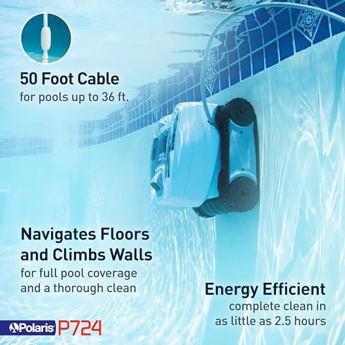 Polaris P724 Robotic Pool Cleaner, Lightweight Energy-Efficient Cleaner Perfect for In-Ground Pools up to 36-Feet, Cleans in as Little as 2.5 Hours