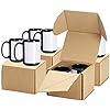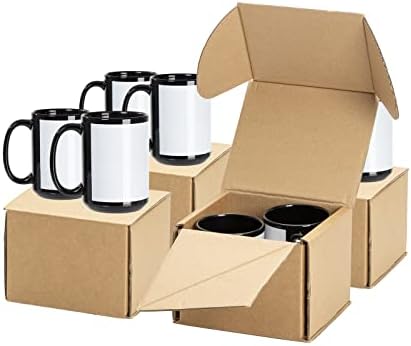 - Specification:15 oz sublimation black mugs with white patch each 2 pieces with hard brown box,4 sets 8 pieces packing with one big brown gift box.