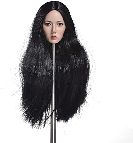 1/6 Scale Female Head Sculpt,Asian Girl Long Black Hair Head Carved for 12inch Female Action Figure Body Doll