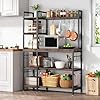 - [ Compact& Functional ] - Tribesigns 5-Tier bakers rack is ideal used as kitchen rack, microwave stand kitchen bakers racks with storage, coffee bar station, etc.. 10 hooks make it convenient to hang some cooking tools like pots, spoons, pans or whisk. Our kitchen shelf rack can blend with a variety of styles, especially rustic barn-style and industrial design