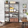 Tribesigns Bakers Rack with Storage for Kitchen 43 Inch Wide Large Racks Shelves, 5-Tier Tall Utility Shelves Organizers and 10 Hooks, Black Brown