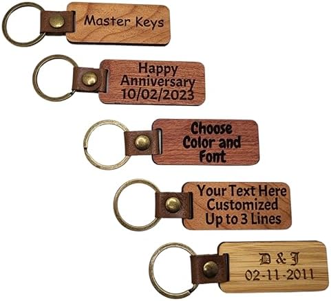 Personalized Wooden Keychain with customizable text on both sides (up to 3 Lines). Enjoy quality wood and endless possibilities!