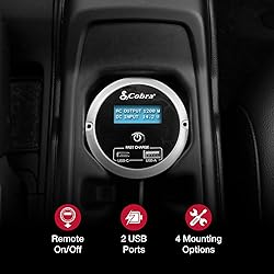 Remote On/Off Switch: Remotely turn on/off your Cobra Inverter from anywhere inside your vehicle. You can also monitor and charge your electronic devices with the Fast Charge USB from anywhere inside your vehicle. 7 Color LED Screen: The LED indicator displays battery voltage and current consumption of the power inverter in use so you can stay safe while powering your smartphones, laptops, entertainment devices, power tools, kitchen, and bath appliances. 4 Mounting Options: First option is flush mounting for permanent installation. Second, keyhole mount for on wall mounting. Third, cup holder mounting for convenience while driving. Fourth, clip mount for easy installation to back seat. Compatibility: This remote controller is compatible with the following Cobra Power Inverter Models: CPI1500W, CPI2500W, CPI3000W, CPI400PSW and CPI500W. Controller dimensions: 3.35 in. L x 3.35 in. W x 1.46 in. H