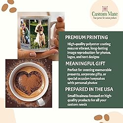 - Transform your cherished memories into a daily dose of joy with this premium personalized photo coffee mug. The white exterior provides the perfect canvas for your favorite photographs, while the sophisticated color interior adds a stylish accent. Each mug features high-quality polyester coating specifically designed for dye sublimation printing, ensuring your pictures appear vivid and lifelike. Whether you're creating meaningful keepsakes, corporate gifts, or special souvenirs, these mugs offer endless possibilities for customization. Add personal photos, meaningful text, or logos - the choice is yours! Built for everyday use, these durable mugs maintain their beauty through regular dishwasher cycles, making them as practical as they are personal. The comfortable handle and generous size make this mug perfect for your morning coffee or afternoon tea. Create a unique gift that brings smiles with every sip, or treat yourself to a personalized addition to your daily routine.