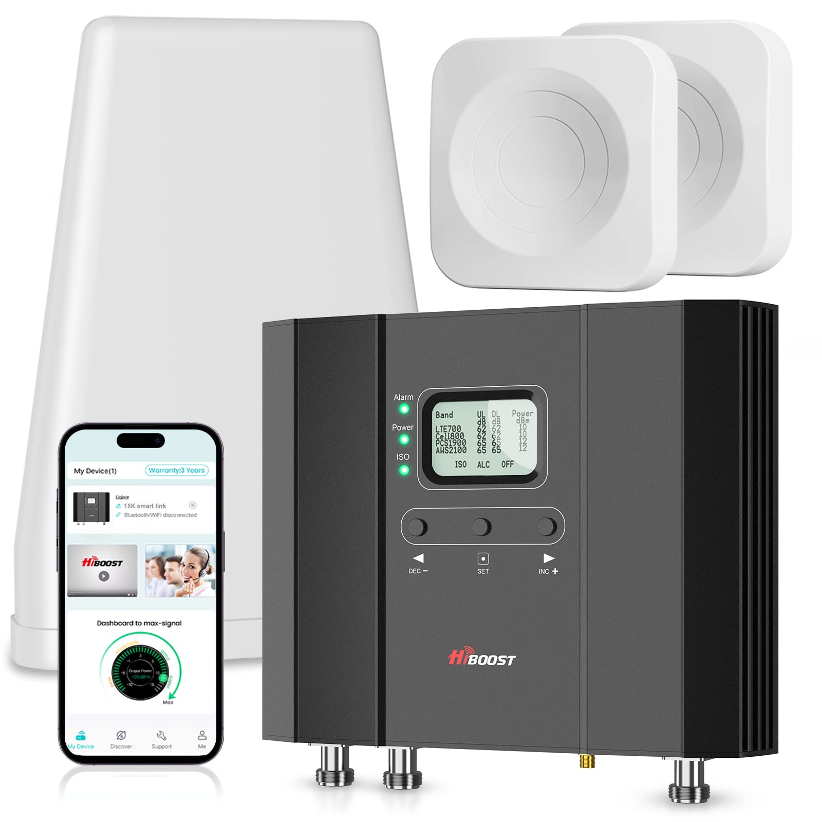 - 📶 𝐁oost 𝐒ignal - HiBoost cell phone signal booster for 2000 Sq.ft. Enjoy lag-free cell phone signal, faster internet connections for streaming, faster to download and upload. High power outside antenna, receive longer distance signal. (It requires at least one bar of signal for the signal booster to enhance the signal.)
