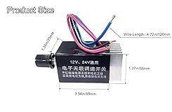 【About DC motor speed controller】DC Voltage 12V or 24V. Overload current: 10A. Supports high power, 12V/120W, 24V/240W 【High quality】This electronic DC stepless speed controller is a controller with a heat sink, which can ensure better heat dissipation. Easy to adjust and control the speed of DC motor, knob screws are easy to use. 【Product size】DC motor speed control :2.5 inches *1.4 inches *1.28 inches; Diameter of knob cap: 0.54 inches; Cable length: 4.54 inches 【Way of connection】black wire connected to the negative pole of power supply,blue wire connected to the negative pole of motor,Red wire connected to the positive pole of power supply and motor 【Widely used】Speed controller for electric motor is widely used for adjusting fan speed control switch, ,defroster ,dc motor speed and controlling automobile car fan heater.