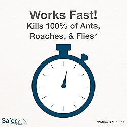 - Don’t let uninvited pests invade your home – take control with Safer Home Ant, Roach & Spider Multi-Insect Killer Aerosol! This multi-insect spray is effective against a variety of household insects and kills ants, roaches, spiders, flies, silverfish, fleas, and more. The contact-kill formula works fast to kill 100% of ants, flies, and roaches within 3 minutes *Woodstream laboratory testing of Safer Home and competitor products (October 2019). It’s made with natural oils, including clove oil and cottonseed oil, and contains no harsh chemicals so it’s safe for use around children and pets when used as directed. The aerosol spray and contains no CFCs so it’s ozone friendly. For your convenience, the aerosol spray bottle makes application a breeze. Holding the bottle 8-12 inches from the target, spray directly on pests until wet, but not to the point of saturation. There’s no residue to wipe up – the spray will dry without cleanup. It is perfect for use in pantries, behind baseboards, in cracks and crevices, around windows and doors, and in attics, basements, crawl spaces, and other areas of your home. Effective against: Ants (Argentine, Pharaoh), Cockroaches (American, German, Oriental, Smokey Brown), Spiders (House), Aphids (Green Peach), Beetles (Asian Lady, Black Carpet, Cigarette), Boxelder Bugs, Cat Fleas (adults), Earwigs (European), Flies (House, Stable, Red Fruit Fly Adults), Hornets (Bald Faced), Mites (Poultry), Mosquitoes, Moths (Clothes, Diamondback), Silverfish, Stink Bugs (Brown Marmorated), Ticks (Brown Dog), Wasps (Yellow Jackets), Whiteflies (Silverleaf)