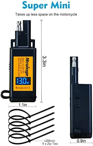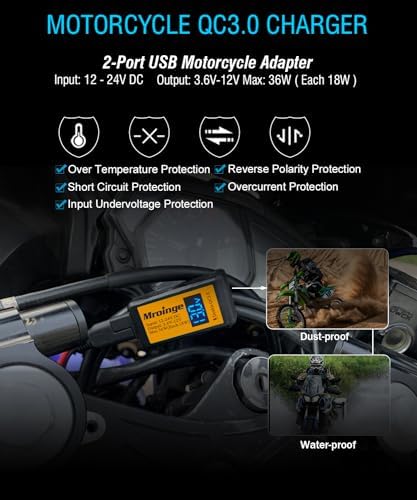 Motorcycle USB Charger, Mroinge 6.8A SAE to USB Adapter Dual Port QC3.0/2.0 Fast Charge, with Voltmeter/Ammeter & ON/Off Switch & 10A Fuse, Perfect for Your Phone or Smart Device Charging