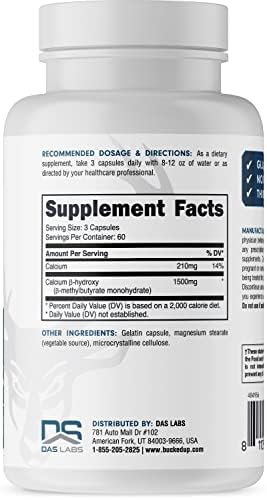 Bucked Up HMB (Beta-Hidroxi Beta-Metilbutirato) 1500mg Por Porción, Essentials (60 Porciones, 180 Cápsulas)