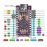 【USB Type C Port Reinforced】-This is latest the USB type C port reinforced and make it more stronger solder points. 【 microcontroller】-The ProMicro is similar to the Pro Mini. The USB type C transceiver inside the 32U4 allows us to add type C connectivity on-board and do away with bulky external type C interface. 【Multi-channels】-This tiny little board does all of the neat tricks that you're familiar with: 9 channels of 10-bit ADC, 5 PWM pins, 12 DIOs as well as hardware serial connections Rx and Tx. Running at 16MHz and 5V, this board will remind you a lot of your other favorite Arduino-compatible boards but this little guy can go just about anywhere. 【Voltage regulator】-There is a voltage regulator on board so it can accept voltage up to 9V DC.The maximum voltage allowed on the RAW pin is 9V, 6-7V input recommended. If you're supplying unregulated power to the board, be sure to connect to the "RAW" pin on not VCC. 【Anti-ESD Package】The boards came in a box package with a pinout diagram printed on, each in their own anti-ESD(Electronic Static Discharge) bag with 3 rows of header pins.