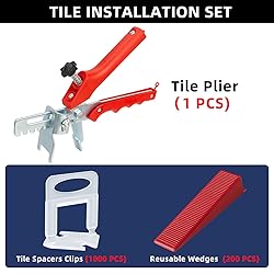 【Package Contents】: 1000 Pieces of Leveling Spacer Clips, 200 Pieces of Reusable Wedges, and 1 Piece of Tile Plier. Our tile installation set will help Install tile faster and achieve professional results. 【Professional Tile Leveling System】: Tile Installation Set - great setting tools for both wall and floor tile. used by professional and DIY installers alike to save time while providing a level and consistently spaced wall or floor. (1 tile requires 4 wedges and 4 spacers ). 【Disposable Tile Clips】: 1000 PCS tile leveler spacers clips included. Suitable for 1/8" (3mm) to 1/2"(12mm) thickness of the tile, allows for a 1/16"(1.5mm) minimum grout joint. 【Reusable Tile Wedge】: 200 PCS wedges. Level, align, space, and hold a tile in place to prevent slippage, ensure a consistent finish, and help correct tile bowing. Reusable for your next tile installation job. 【Quality And Value】: Our tile leveling system kit is made of sturdy and durable plastic. Very suitable for floor/wall tile installation, can be used for leveling all tile types, such as porcelain, ceramic, marble, and all-natural stone.