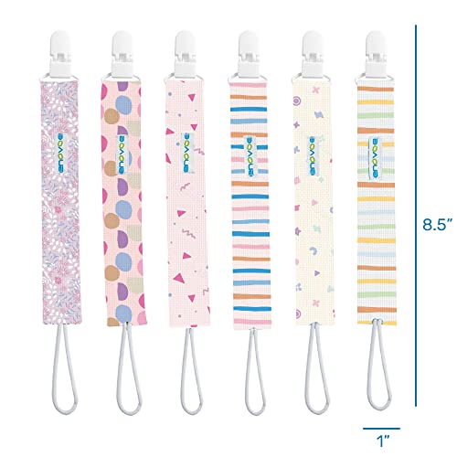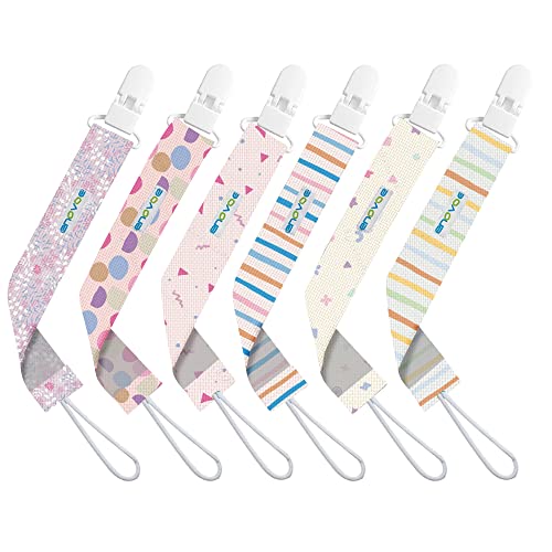 Enovoe Pacifier Clip - Pack of 6 - Pacifier Clips - Stylish Teething Ring Pacifier Holder for Baby Boys and Girls - Pink