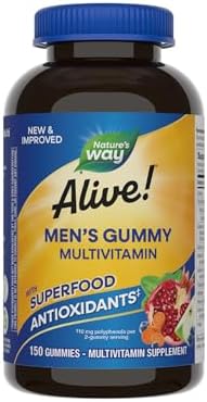 Nature's Way Alive! Multivitamínico de Gomitas Diario para Hombres, Soporte para el Metabolismo de Energía y Función Muscular*, Vitaminas B, Sin Gluten, Vegetariano, Sabor a Fruta, 150 Gomitas (El Empaque Puede Variar)