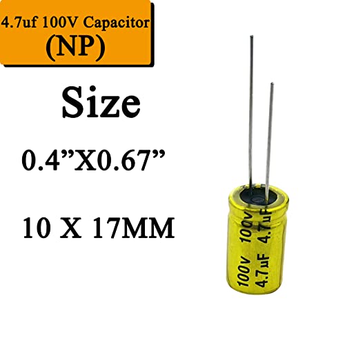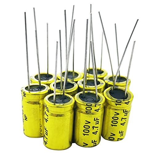 4.7uF 100V Capacitor,10 PCS Non-Polarized Electrolytic Capacitor 100V 4.7uF 10mm x 17mm NP Capacitor Product Description Capacitance:4.7uf capacitor Voltage: 100V Capacitance Tolerance: ±20% Operating Temperature: -40-+105°C Capacitor dimension:10x17mm Features:Non-Polar Electrolytic Capacitors Quantity: 10 pcs The Non-Polar electrolytic capacitor is connected to the circuit without considering the polarity anyway, only the withstand voltage and capacity can be considered.Good for repairs and little projects.Applicable for game console,DIY Projects,TV, radio,prototyping board,LCD monitor,etc. Package List 10Pcs 4.7uf 100V Electrolytic Non-Polarized Capacitor