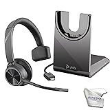 Poly Voyager 4310 - UC Wireless Bluetooth Mono Headset (USB-C) with Charge Stand - Bundled with Global Teck Microfiber Cloth - Compatible with Deskphone, PC/Mac, Works with Zoom, RingCentral, Vonage