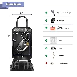 🔒【Multiple Ways to Unlock】Manage your smart keybox with the free TTLock App + Advanced 3D fingerprint sensor + Touchscreen keypad with backlight and Anti-peep virtual password (6-9 digits) + Smart cards(5 include) 🔒【Key Lock Box Wall Mount and Doorknob Mounting】This lock box constructed of zinc alloy,can be used for both indoor and outdoor use,can hang on door handle or fix to a wall mounted.Easily install it on drywalls,steel doors,fence posts,and more.Large capacity,holding multiple keys,keycards,vehicle keys or other important items. 🔒【TTLock App has robust permission management】Give access codes and virtual keys to family,friends,housekeepers and others without worrying about lost or copied keys.Manage access anytime anywhere.Whether you're a homeowner,renter,short-term rental property manager,or realtor,smart key lockbox make it incredibly convenient to share car or house keys or access cards with others. 🔒【Remote Access Lock Box Wifi】Paired with CATCHFACE WiFi Gateway(Optional Add-On,Sold Separately,Asin:B085HFFF9T),you can Lock/Unlock your bluetooth lock box anywhere anytime,set up codes remotely and check real-time access logs. 🔒【USB + Low battery alarm,Double Assurance】Four AAA batteries power the K3 key box for up to a year for long-term security you can trust.Low battery alarm on TT Lock app(Free APP).When battery runs low,supply emergency power via the integrated micro USB port,so you’ll never be locked out. 🔒【Installs Anywhere】4 AAA batteries power,waterproof,LED-backlit design gives you the freedom to discreetly install anywhere near your lock.