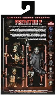 ¡Una esperada adición a la línea Ultimate Predator de NECA! Después de derrotar al Cazador de la Ciudad en Predator 2, el detective Mike Harrigan se encuentra con más miembros de la Tribu Perdida, incluyendo un misterioso Predator que porta un bastón distintivo. Incluye capa, bastón, collar de huesos, daga ritual, disco de lanzamiento abierto, cráneo humano, cráneo hacha, cabezas enmascaradas y sin máscara, además de manos intercambiables. Empaquetado en caja de ventana para coleccionistas con pantalón frontal abatible.