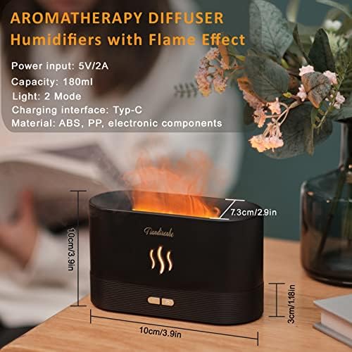 Tiandirenhe Flame Diffuser,Fire Diffuser, Essential Oil Diffuser, Humidifiers with Flame Effect,180ml Cool Mist Humidifiers for Home, 7 Color Variations That can be Set to one Color(White)