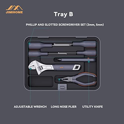 - 【Portable Multi-functional Drill Kit】Packed with all the essential tools to measure, cut and build JIMIHOME Stackable Tool Kits X Tray Set offer a variety of hand tool and power tool combinations to fit any home project. Features all the standard tools you need for household projects; this is also a great set the DIY-er who wants quality tools in an organized portable box.