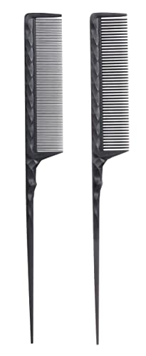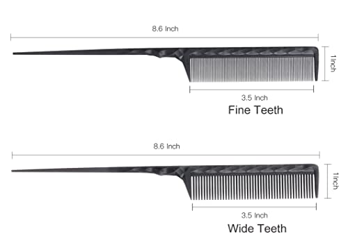 PERFEHAIR Heat Resistant Rat Tail Combs for Flat Iron Straightening, 2 Pieces Carbon Fiber Anti Static Styling Combs for Women, Fine and Wide Teeth, Black