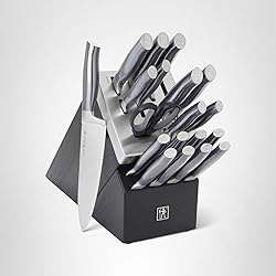 - The 20-piece knife block set features all the knives you need to set your kitchen up right. From the 3-inch paring knife for smaller scale jobs to the all-rounder 8-inch chef’s knife for slicing and dicing, this set contains the key knives for all tasks, along with kitchen shears and 8 ultra-sharp steak knives.The self-sharpening slots boast built-in ceramic honing wheels that automatically sharpen when knives are stored or removed. The remaining slots are for serrated knives, with toothed blades that never need sharpening.