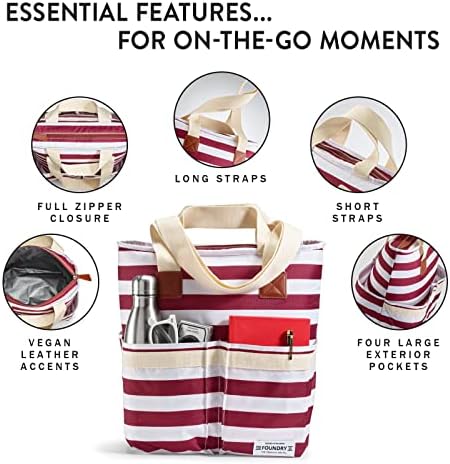 Fit & Fresh Foundry Wine Carrier Bag & Soft Cooler Bag Insulated Leak Proof, Large Soft Sided Cooler Bag, 6 Bottle Wine Bag With Removable Divider For Beach, Picnics, and Travel, Merlot Stripe