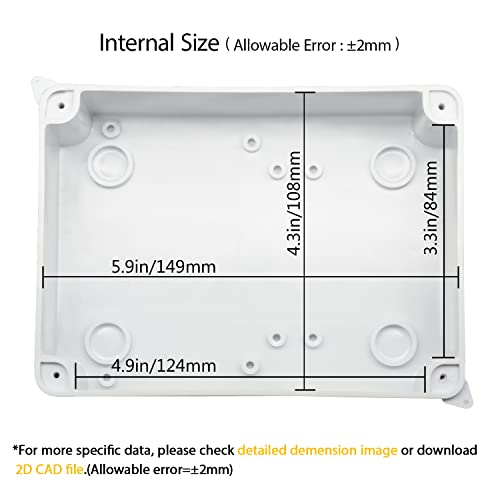 LeMotech Junction Box, Electrical Box IP65 Water Resistant Dustproof ABS Plastic Project Enclosure for Electronics White, External Size 5.9 x 4.3 x 2.8 inch