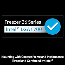 CONTACT FRAME FOR INTEL LGA1851 AND LGA1700: Improved contact pressure distribution through Intel mounting frame for efficient heat transfer thanks to even CPU contact surface HIGH-PERFORMANCE FOR HIGH-END CPUs: With its 4 offset heat pipes, the single-tower cooler enables fast heat transfer to the heat sink. There, the heat is efficiently dissipated by pressure-optimised 120 mm fans. INNOVATIVE FAN MOUNTING: Innovative click installation system makes it easier to install the cooler or replace the fans. The Freezer 36 is compatible with most 120 mm fans SIDE-FLOW HEAT SINK: By opening the fins on the side, the pull fan draws additional cool air out of the case through the heat sink, optimises ventilation and increases cooling efficiency 6 YEARS WARRANTY: We are convinced of the quality and durability of our products, and we are happy to pass this on to our customers