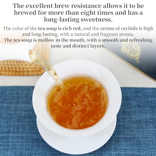 - Taste: XIXICHA premium wuyi mountain foral dahongpao. Authentic high quality oolong tea, after the tea is brewed,the soup has a bright orange-yellow color, a mellow taste,a strong aroma,and a unique orchid fragrance. "Rock tea rhyme" is rich.Floral Dahongpao is very resistant to brewing, and it is still very fragrant after brewing seven or eight times