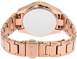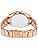 - caja importada de acero inoxidable en tono oro rosa con esfera plateada tipo rayos de sol; pulsera de acero inoxidable en tono oro rosa con cierre desplegable con botón pulsador; intercambiable con todas las correas Fossil de 16 mm