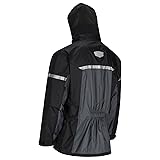 Superior Waterproof Protection: The Tourmaster Sentry Rain Motorcycle Jacket features a waterproof and breathable ripstop nylon shell with PU lamination and sealed seams, ensuring you stay dry and comfortable in wet weather conditions. Innovative Aqua-Barrier Hood: Designed with an Aqua-Barrier under-the-helmet hood, this jacket prevents water from rolling down your neck, providing superior protection against rain during your rides. Comfort and Ventilation: Enjoy maximum comfort with a microfiber-lined collar and cuffs, underarm exhaust vents for enhanced breathability, and a poly mesh comfort liner, ensuring a pleasant riding experience. Adjustable Fit and Storage: Customize your fit with adjustable waist belts and arm take-up straps, and keep your essentials safe and dry with dual waterproof exterior storage pockets and an internal storage pocket. Durable and Convenient Design: The jacket includes an extra tall collar with an easy-to-grab TPR puller, a 2-way main zipper, and a full-length hook-and-loop storm front closure, providing convenience and durability for every ride.