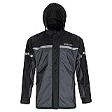 Superior Waterproof Protection: The Tourmaster Sentry Rain Motorcycle Jacket features a waterproof and breathable ripstop nylon shell with PU lamination and sealed seams, ensuring you stay dry and comfortable in wet weather conditions. Innovative Aqua-Barrier Hood: Designed with an Aqua-Barrier under-the-helmet hood, this jacket prevents water from rolling down your neck, providing superior protection against rain during your rides. Comfort and Ventilation: Enjoy maximum comfort with a microfiber-lined collar and cuffs, underarm exhaust vents for enhanced breathability, and a poly mesh comfort liner, ensuring a pleasant riding experience. Adjustable Fit and Storage: Customize your fit with adjustable waist belts and arm take-up straps, and keep your essentials safe and dry with dual waterproof exterior storage pockets and an internal storage pocket. Durable and Convenient Design: The jacket includes an extra tall collar with an easy-to-grab TPR puller, a 2-way main zipper, and a full-length hook-and-loop storm front closure, providing convenience and durability for every ride.