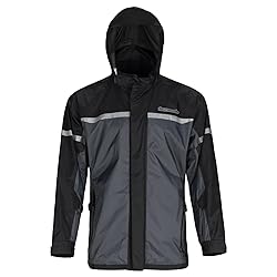 - Stay protected and comfortable in any weather with the Tourmaster Sentry Rain Motorcycle Jacket, a must-have for riders who refuse to let rain interrupt their journey. This jacket is crafted from a durable waterproof and breathable ripstop nylon shell with PU lamination and sealed seams, ensuring you stay dry even in heavy downpours. It features an Aqua-Barrier under-the-helmet hood that prevents water from rolling off your helmet and down your neck, while the extra tall collar with an easy-to-grab TPR puller provides additional protection. The microfiber-lined collar and cuffs offer comfort, and the 2-way main zipper with a full-length hook-and-loop storm front closure keeps rain out. For added ventilation, underarm exhaust vents help maintain breathability, while the poly mesh comfort liner enhances overall comfort. With dual waterproof exterior storage pockets and an internal storage pocket, this jacket offers ample space to keep your essentials dry. Adjustable waist belts and arm take-up straps allow you to fine-tune the fit, and the bottom hem shock cord drawstring ensures a snug and secure fit. Designed for practicality and style, the Tourmaster Sentry Rain Jacket is your reliable companion for wet weather rides.