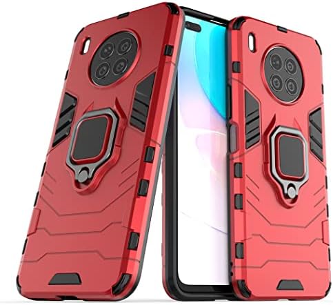 Compatible with Huawei Nova 8i, Honor 50 Lite Case, Metal Ring Grip Kickstand Shockproof Hard Bumper (Works with Magnetic Car Mount) Dual Layer Rugged Cover (Red)