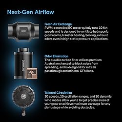 - Product DescriptionIntroducing the upgraded AI-powered grow tent system—engineered with a cutting-edge intelligent controller that autonomously manages your grow environment for peak performance and maximum yields. This next-generation system uses smart sensors and algorithms to dynamically maintain ideal temperature, humidity, and airflow, taking the guesswork out of indoor growing. The inline fan, carbon filter, and ducting system work seamlessly to regulate climate conditions, actively removing excess heat, humidity, and odors. Our eco-friendly carbon filter is long-lasting, filled with Australian Virgin carbon rated at 1200+ IAV, and has a higher microporosity. Airflow is fine-tuned with a re-engineered oscillating clip fan, built with range control to deliver custom, targeted circulation that adapts to your plant’s needs over time. At the heart of the system is a powerful LED grow light built with algorithmically arranged LM301H diodes, providing superior light output, higher efficiency, and broader coverage than LM301B, Bridgelux 3030, and other standard LEDs. All components are enclosed within an advanced high-density Oxford grow tent, reinforced with a durable steel frame, lab-tested reflective Mylar interior to create a stable climate-controlled growing environment featuring a large window to view your grow without disruption. With the power of AI now integrated, this grow tent system doesn't just support your grow—it thinks ahead for it.Intelligent ProgrammingThe CONTROLLER AI+ observes your grow space, pairing with the inline fan, clip fan, and LED grow light, and makes environmental adjustments to ensure its stability. Going beyond on/off triggering and timer programming, it is always learning, analyzing previous results to avoid over- or undershooting output levels and better optimize your climate. Connect this controller to the AC Infinity app to select between two AI modes that adjust automatically or fine-tuned control for greater customization. You can also get access to helpful grow guides, recipes, articles, video tutorials, and chatbot assistance that will equip you with the knowledge to improve how you grow.