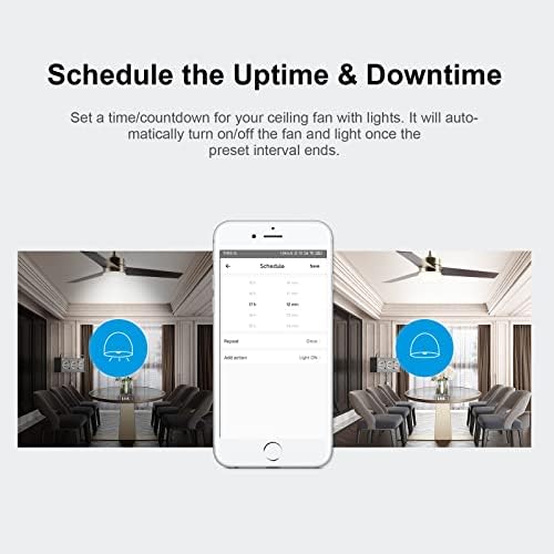- 【Timer&Schedule】By presetting single, repeating, and countdown timers, the iFan03/iFan04 WiFi Ceiling Fan&Light Controller can be automatically turn on/off at a specific time.