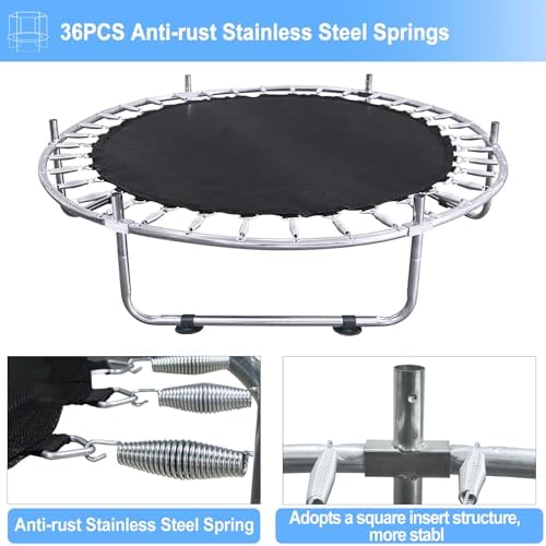 - 💕Excellent Bouncing Performance: This small trampoline for kids has 36 anti-rust waist drum springs, which are super elastic and more secure. The high-quality alloy steel frame and spring sturdy frame provide support and stability for long-lasting jumps, The kid trampoline can give children a good sense of experience and give children a healthy and happy childhood