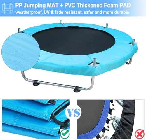 - 💕Easy to Clean & Durable: The trampoline mat is made of waterproof material, easy to clean, and suitable for both indoor and outdoor use. The children's trampoline adopts a heavy-duty alloy steel frame, which is rust proof and corrosion-resistant, and not easy to break. The trampoline pad is also made of Oxford cloth, which is not easy to damage