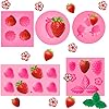 Molde de silicona para hornear fresas, 5 unidades, hecho a mano, caramelos y gelatina, molde 3D con flores y fresas, moldes de silicona integrados, molde de silicona con forma de fruta, molde de pastelería para jabón, cera, chocolate, fondant, helado, magdalenas, tartas