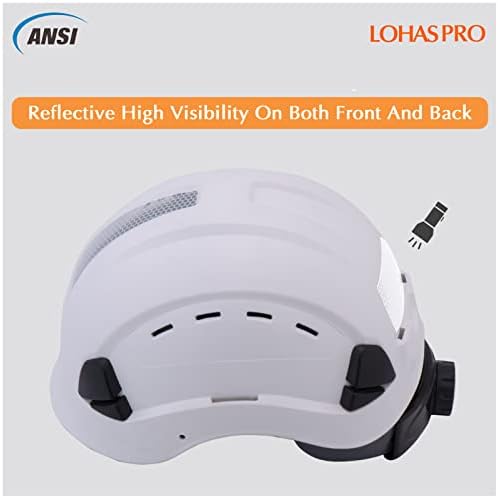 - 【Designed For Safety】LOHASPRO hard hats construction safety helmet osha hardhat are approved with ANSI Z89.1-2014 Type I Class C. Made of high impact ABS hard hat shell,LOHASPRO hard hat work helmet are lightweight and strong. Safety hard hat with chin strap is designed to reduce risk of losing helmet during a fall. Six-point ratchet suspension is designed for excellent impact absorption. Reflective Design on Hard Hat makes workers visible in low-light conditions for enhanced safety