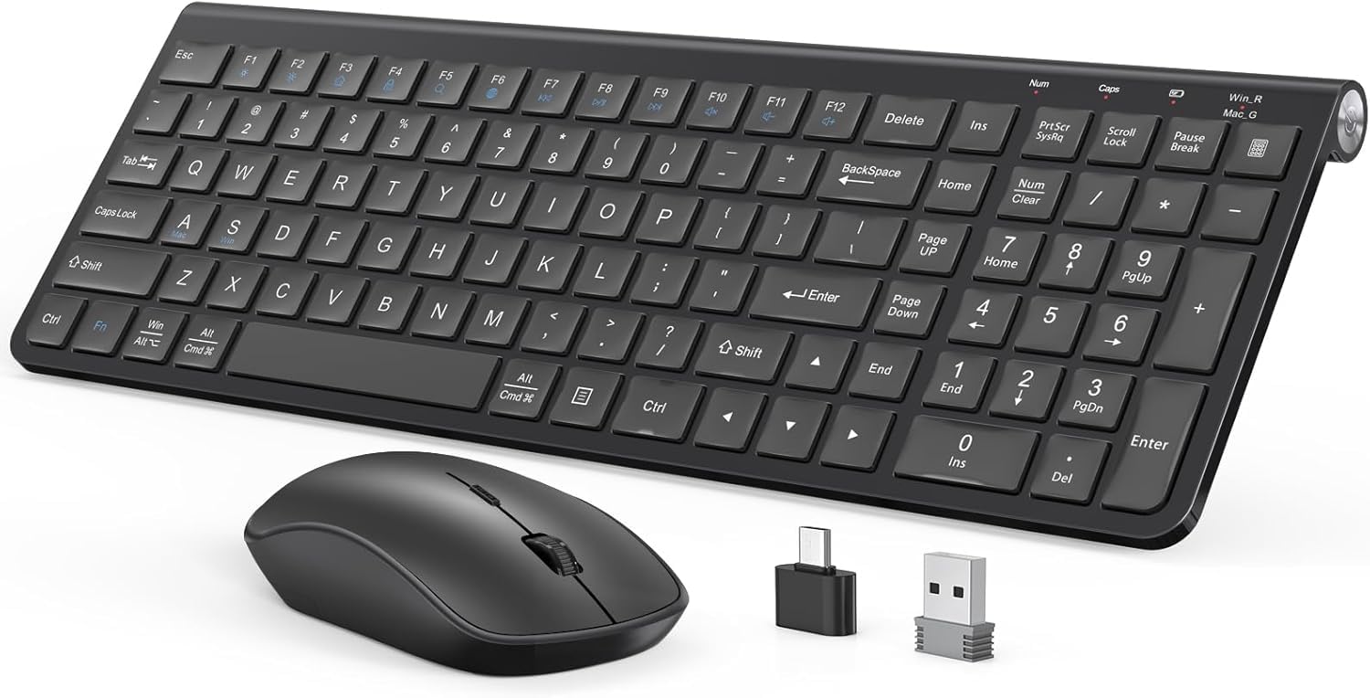 - Wide Compatibility-Compatible with Windows 2000 / ME / XP / Vista / 7 / 8 / 10. Work well with Macbook, desktops, Chrome-book, PC, Laptop, Computer Smart TV and more. Note:The USB nano receiver is stored in the groove on the right side of the keyboard battery compartment.