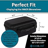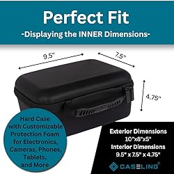 SPACIOUS SIZE: This hard case for electronics measures: Interior - 9.5" x 7.5" x 4.75". Exterior - 10" x 8" x 5". Check the interior size of the case to ensure it's suitable for your item. Use the outside measurements to check if the case will fit in your space. KEEPS YOUR VALUABLES PERFECTLY PROTECTED: This hard shell case with foam is designed to maximize protection for your valuables. It's perfect for a variety of electronics, cameras, tablets, smartphones, and so much more. It’s available in multiple sizes for your convenience. EQUIPPED WITH A CUSTOMIZABLE FOAM INSERT: The travel carry case comes with a customizable foam cutout. The foam cutout inside of ours allows you to tailor the case to meet your exact needs. Perfect for Camera, electronics, Go Pro, and accessories. SPECIALLY DESIGNED TO BE EASIER TO CARRY: Although it provides heavy-duty protection, the storage case is not difficult to carry around. The semi-hard EVA case is lightweight, so it's perfect for storing valuables when you're on-the-go. EXCELLENT GIFT IDEA THAT WILL GET A TON OF USE: This TSA-approved case is one of those gifts that will get put to good use right away and keep on giving for many years to come. It's great gift for all men and women – young and old! WE TAKE PRIDE IN THE QUALITY OF OUR PRODUCTS: We're confident you'll appreciate the craftsmanship and attention to detail that goes into creating this large hard case. Each one comes backed by our No Hassle 1 Year Replacement Warranty.