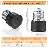 Package Content: You will receive 1 pack socket to outlet adapter, suitable for converting outdoor porch light sockets, garage lights, patio bulb bases, and more. This light bulb adapter is perfect for outdoor gatherings during Christmas, Thanksgiving, and other holidays Easy to Install: Installing the socket plug adapter is simple just turn off the light, remove the existing bulb, and screw the socket plug adapter into the lamp holder. This light socket to plug adapter is ideal for electrical, household, industrial, mechanical, and other applications E26/E27 Socket Adapter: This socket adapter converts a bulb socket into a 3 prong outlet and is also compatible with 2 prong polarized plugs. The light bulb plug adapter is perfect for addressing outdoor socket shortages and fulfilling socket conversion needs Product Rating: E26/E27 Lamp Holder to Plug Socket Adapter with a voltage range of 0-125V AC and a maximum wattage of 1250W. Made from flame retardant PC material, this lamp socket adapter is heat resistant and built for long lasting use. It is designed to meet U.S. standard connections Wide Application: This light bulb socket adapter is designed for both indoor and outdoor use, providing power for low wattage appliances in patios and making it an ideal way to add outlets for holiday decoration lights. Note: This bulb adapter is not suitable for use in damp locations