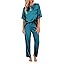 Ekouaer Womens Satin Silky Pajama Set Short Sleeve Shirt with Long Pajama Pant Set Soft PJ Loungewear