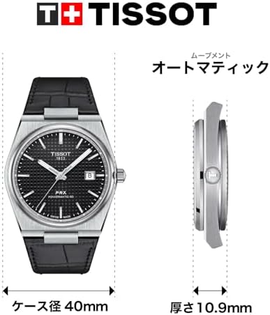 Reloj automático Tissot Mens PRX Powermatic 80 con caja de acero inoxidable 316L, negro, cuero, 12 (T1374071605100)