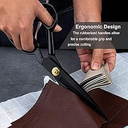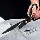 HEAVY-DUTY AND DURABLE: The fabric scissor is made of high carbon steel construction with anti-rust titanium coated blades. Heavy-duty industrial scissors make it easy to cut more than 32 layers of fabric. It is sharp and durable ALL PURPOSE SCISSORS: The all purpose scissors glide easily through multiple layers of fabric, felt, denim, leather, carpet, dresses, silk, jeans, paracord, and burlap. Perfect for craft, sewing, tailoring, knitting, and embroidery BONUS MEASURING TAPE: Flexible and portable measuring tape, made from soft plastic material, white color, suitable for measuring curved or flat surfaces, dual-sided to show inches and centimeters, measuring range is 60 inches, 150cm PROFESSIONAL SEWING SCISSORS: The embroidery scissor is rounded and ergonomic to fit easily into your hand. Rubberized handles that allow for a comfortable grip and precise cutting STAND THE TEST OF TIME: Each pair of scissors is individually inspected and hand tested. The sewing scissors have excellent corrosion resistance, high wear resistance, and each one is very durable and can be used for a long time