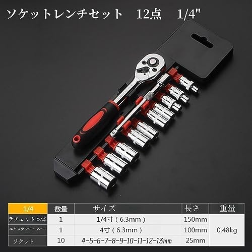 12-Piece 1/4" Ratchet Socket Wrench Set, Drive Socket Set of 10 4-13mm Socket Quick Release Ratchet Handles and Extensions